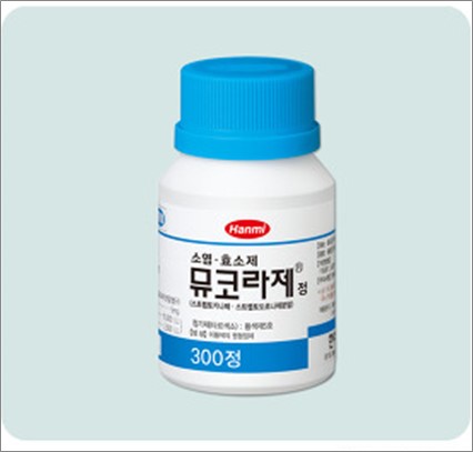 오늘은 한미약품社의 뮤코라제정에 대해 알아보겠습니다. 의약품의 영문명은 Mucolase Tab.입니다.