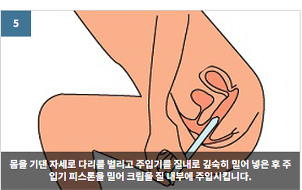 ○ 삽입이 어려운 경우에는 약의 표면에 물이나 로션, 베이비오일을 사용하면 쉽게 삽입할 수 있습니다.