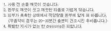 ○ 환부 위에 직접적인 드레싱(dressing)은 피해야 합니다(단, 필요한 경우에만 드레싱 합니다).