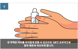 ○ 차가운 약은 머리를 어지럽게 할 수 있으므로 3분 정도 손바닥으로 쥐어 체온과 비슷한 온도로 만들어 사용합니다.